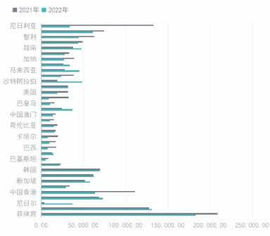 圖二2021/2022年1-6月我國焊管分國別出口量
