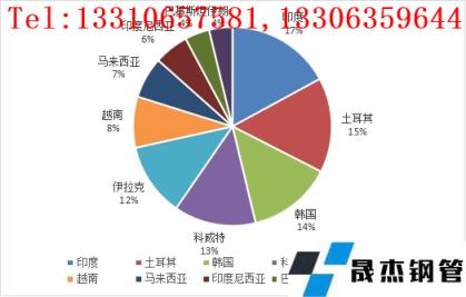 6月份我國無縫管的主要流向地區(qū)依次為印度、土耳其、韓國、科威特、伊拉克,占當月出口比重分別為7.86%、7.1%、6.32%、6.14%和,上述地區(qū)出口累計出口量占當月出口量32.9%。