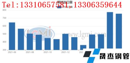 圖三2021年—2022年我國厚壁鋼管出口走勢圖