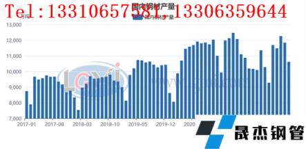 圖3 2017-2022年月度厚壁鋼管產量